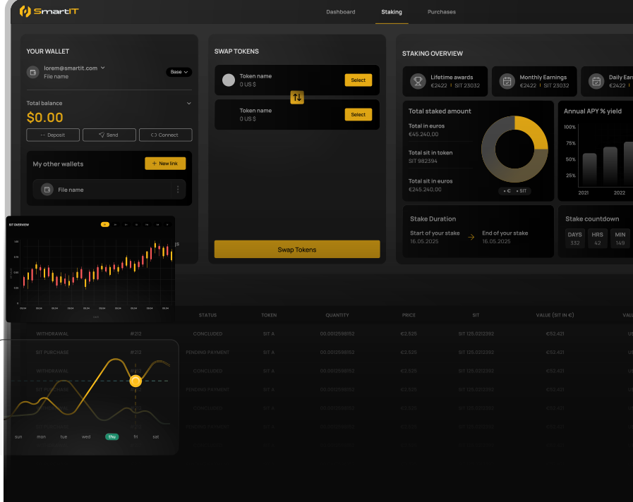SIT dient dir als „Zugangsschlüssel“ zu verschiedenen Funktionen der SmartIT Plattform, einschließlich Staking, Liquidity Mining sowie zur Nutzung und Interaktion mit Smart Contracts und anderen dezentralen Anwendungen. Und das Beste:
